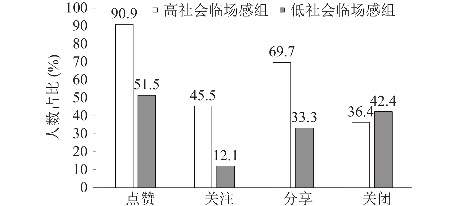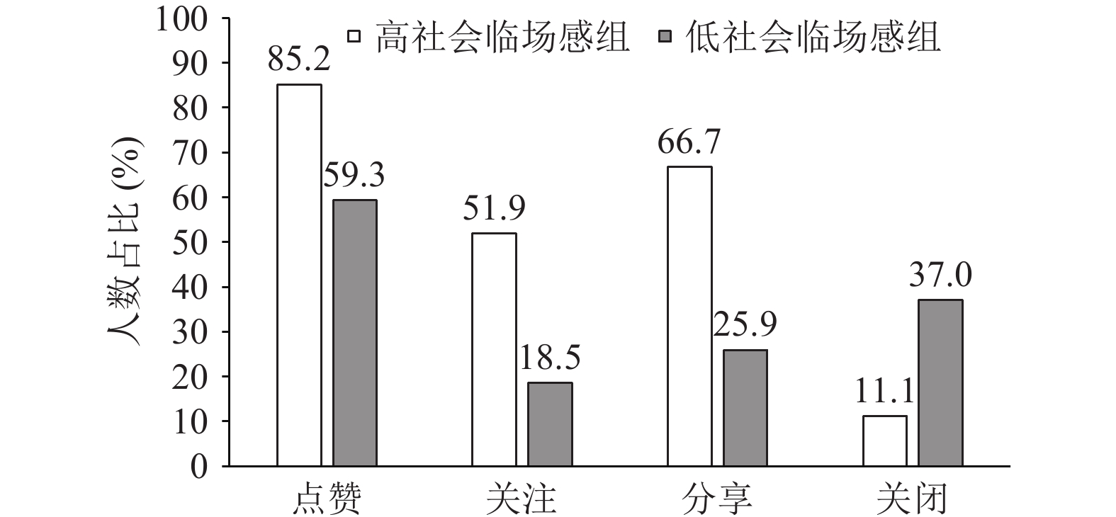 谢莹, 崔芳, 高鹏. 网络直播情境下共在临场感与社会临场感对从众消费的影响. 商业经济与管理, 2021, (2): 68- 79.