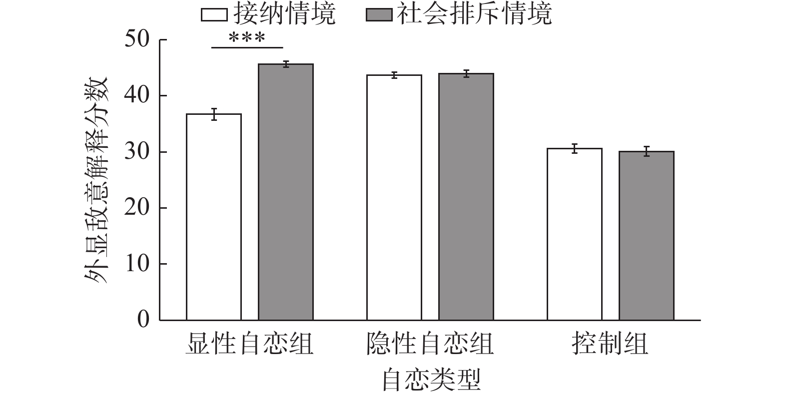 关键词: 社会排斥, 显性自恋, 隐性自恋, 外显敌意解释偏向, 内隐敌意解释偏向