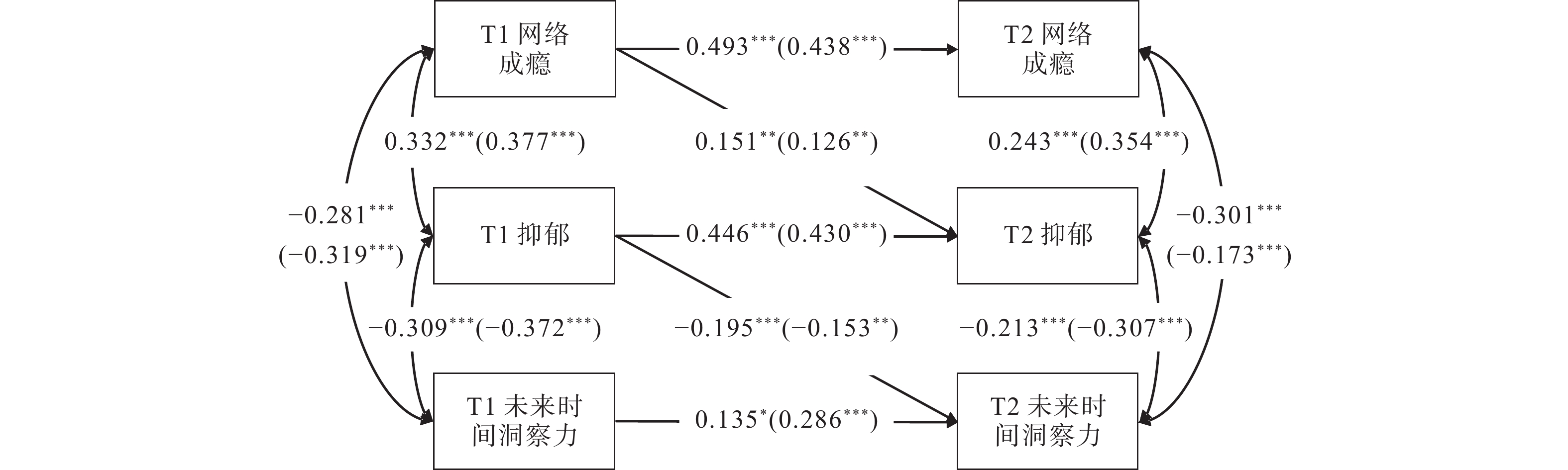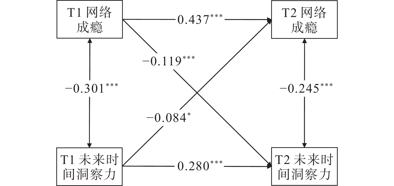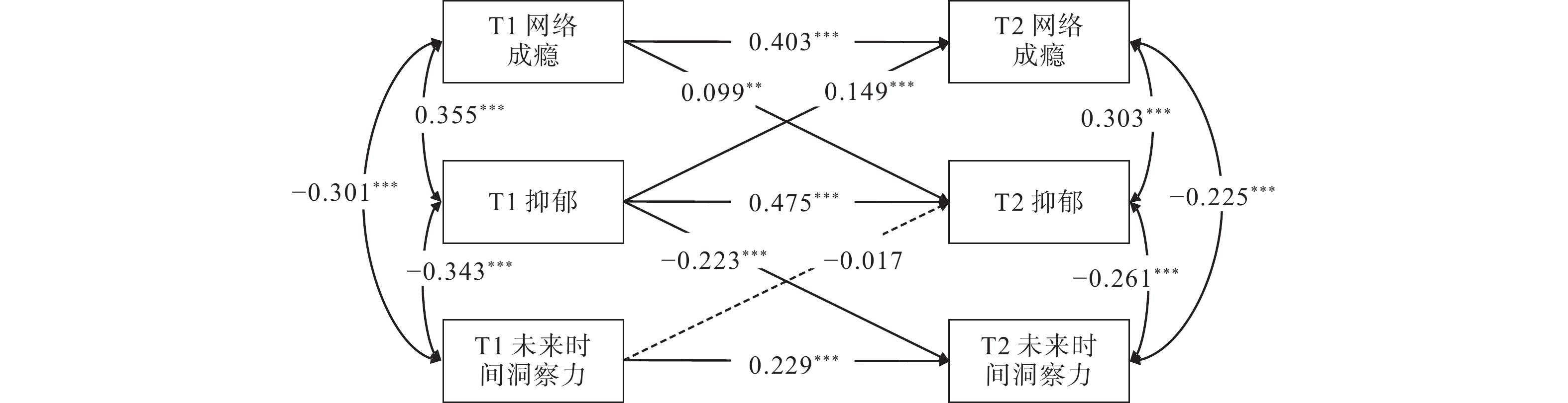 | 4. T2网络成瘾 | −0.001 | −0.046 | 0.462** | |||||