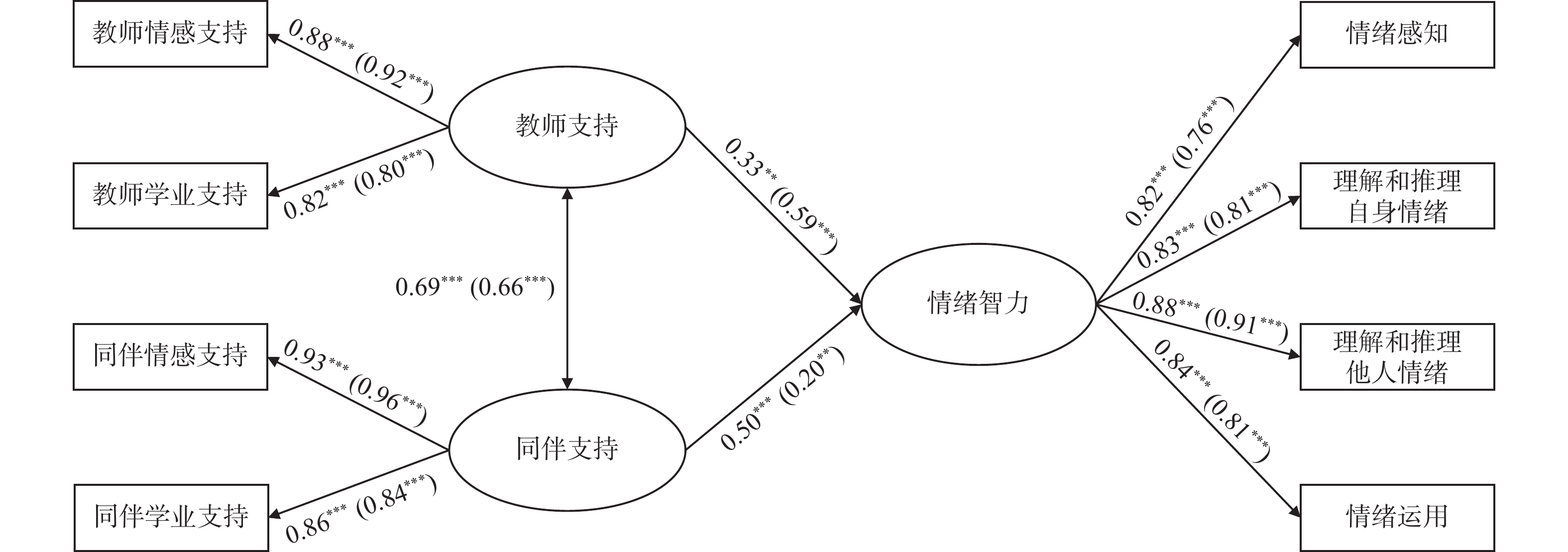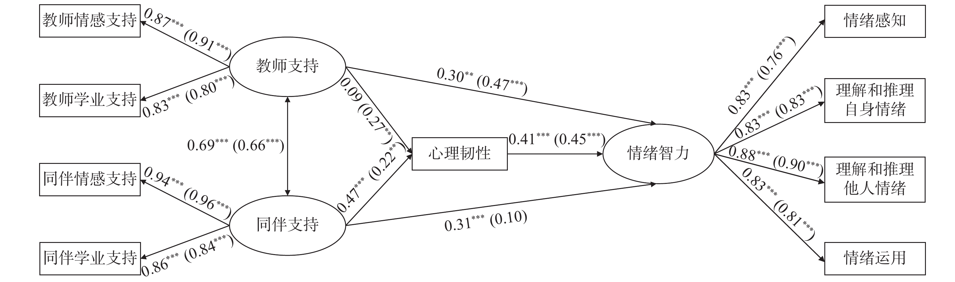 关键词: 超常儿童, 情绪智力, 教师支持, 同伴支持, 心理韧性