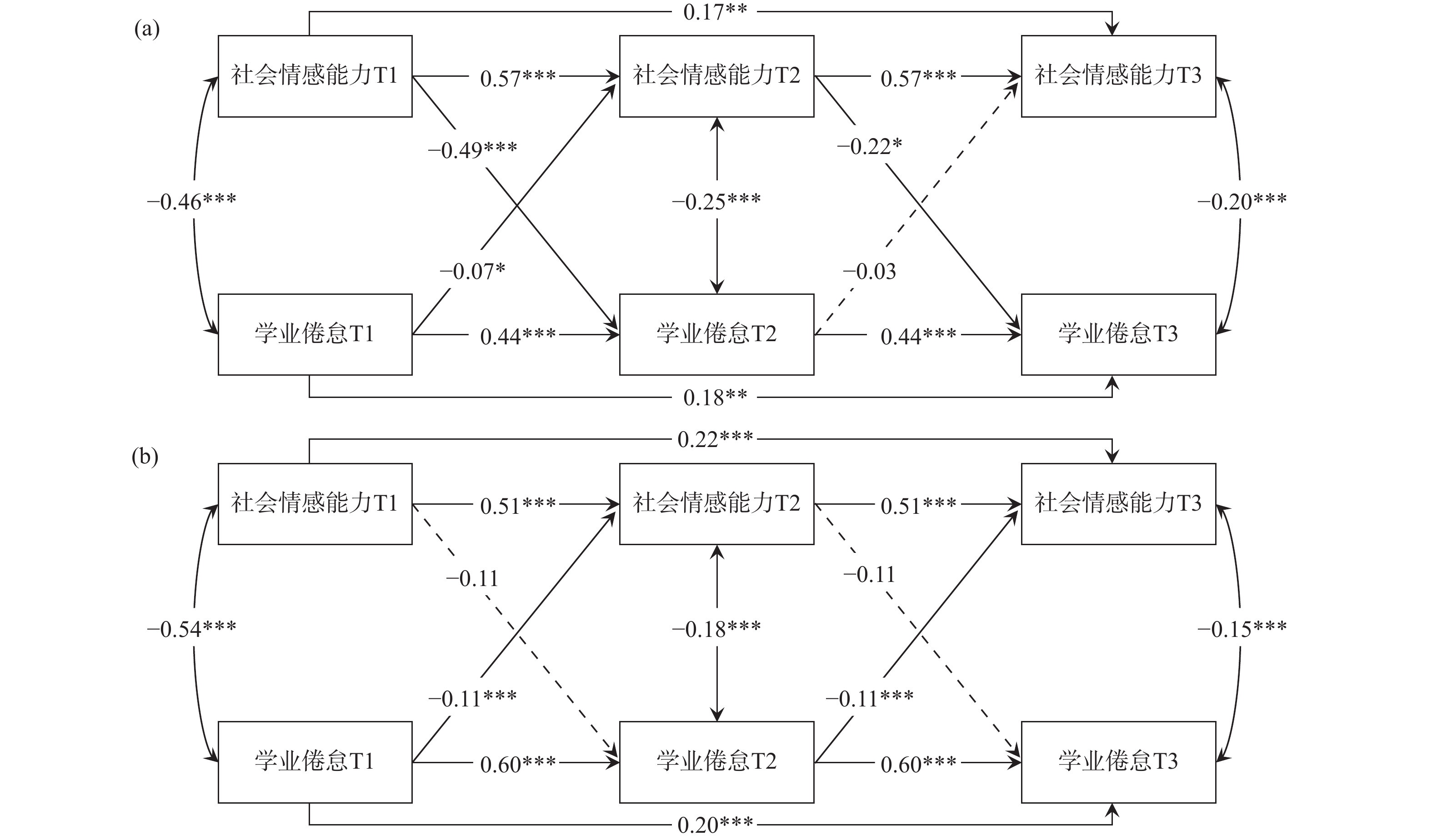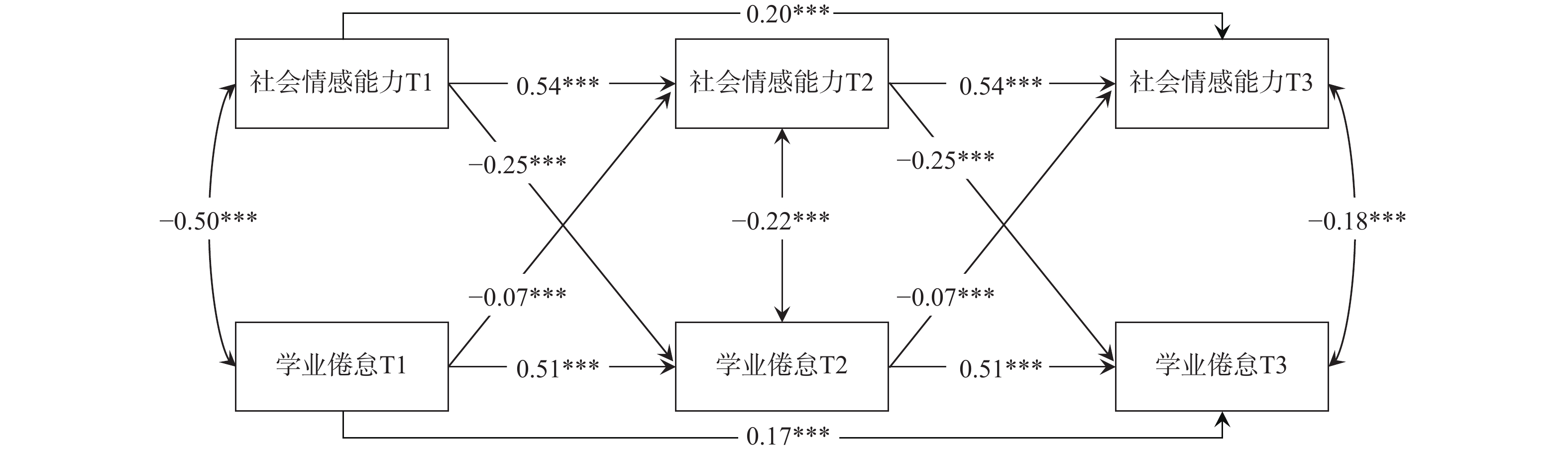 | 社会情感能力与学业倦怠的交叉滞后模型 | |||||||||